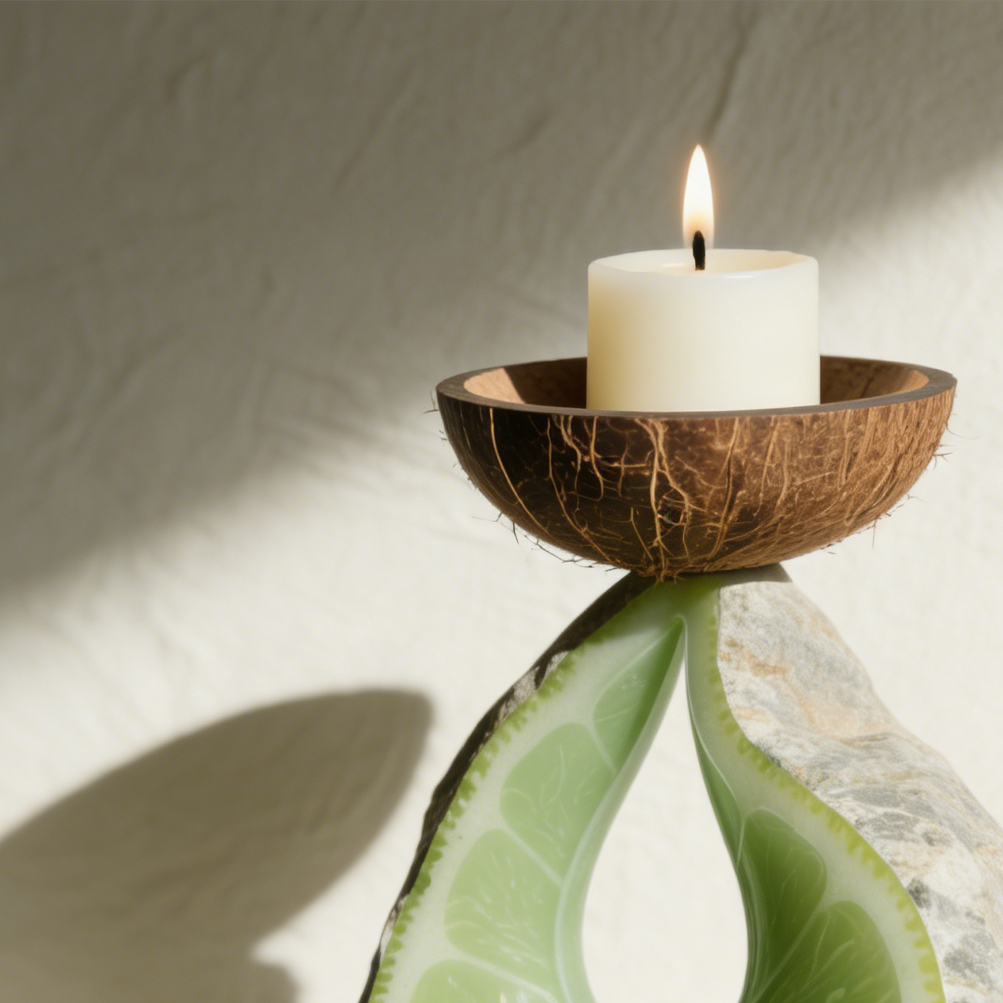 Świecznik z kamienia o motywie cytryny